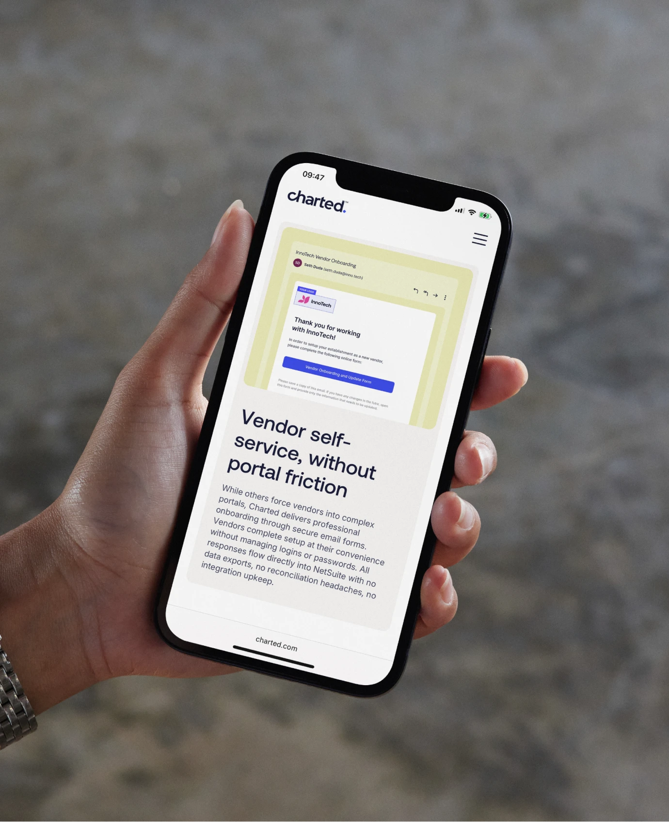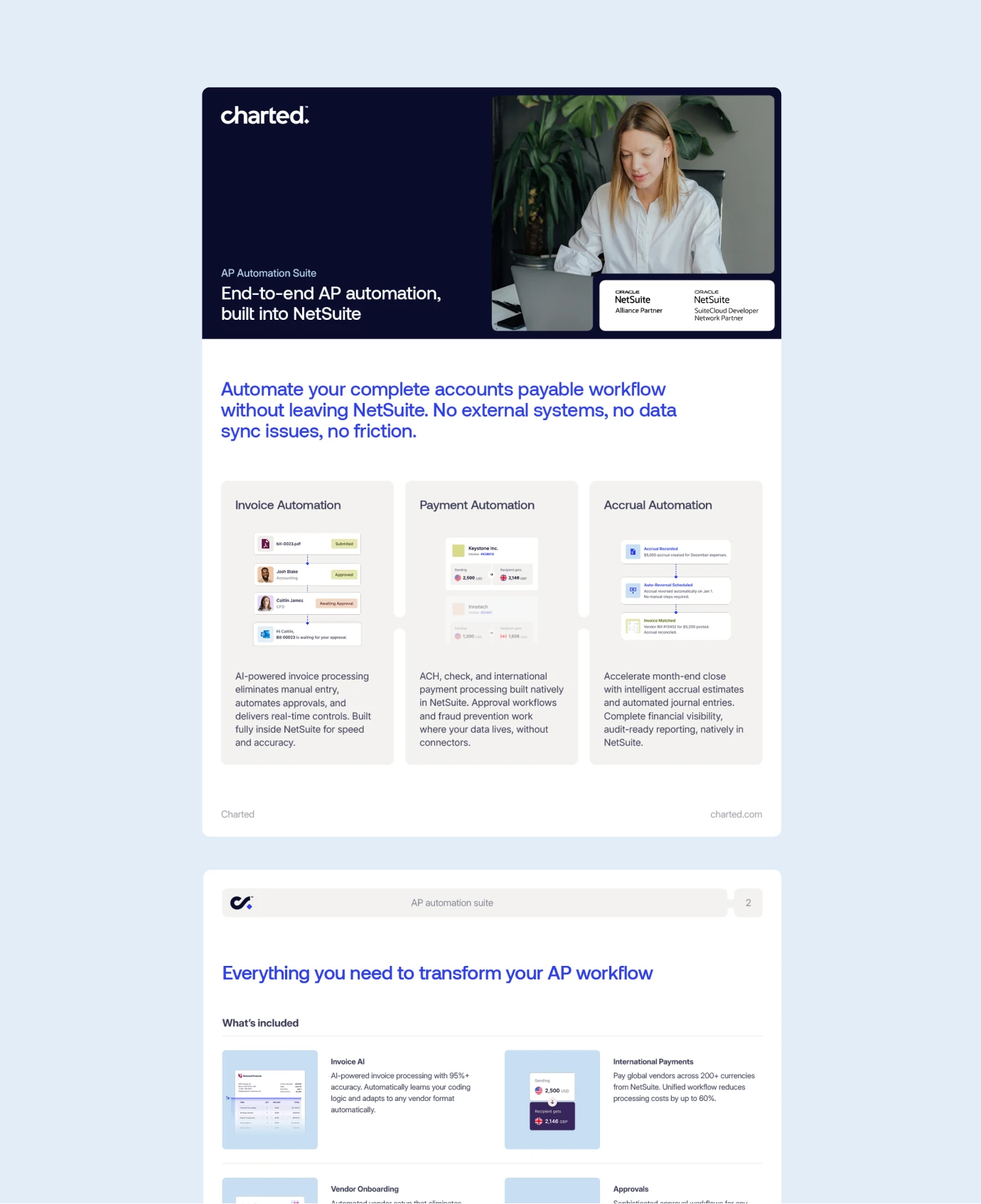 Through workshops and customer research, we developed the name Charted and built a strategic platform around “Frictionless by Design”, capturing how the product makes financial operations flow. This core idea underpins positioning, messaging pillars, and verbal identity across marketing, sales, and product.