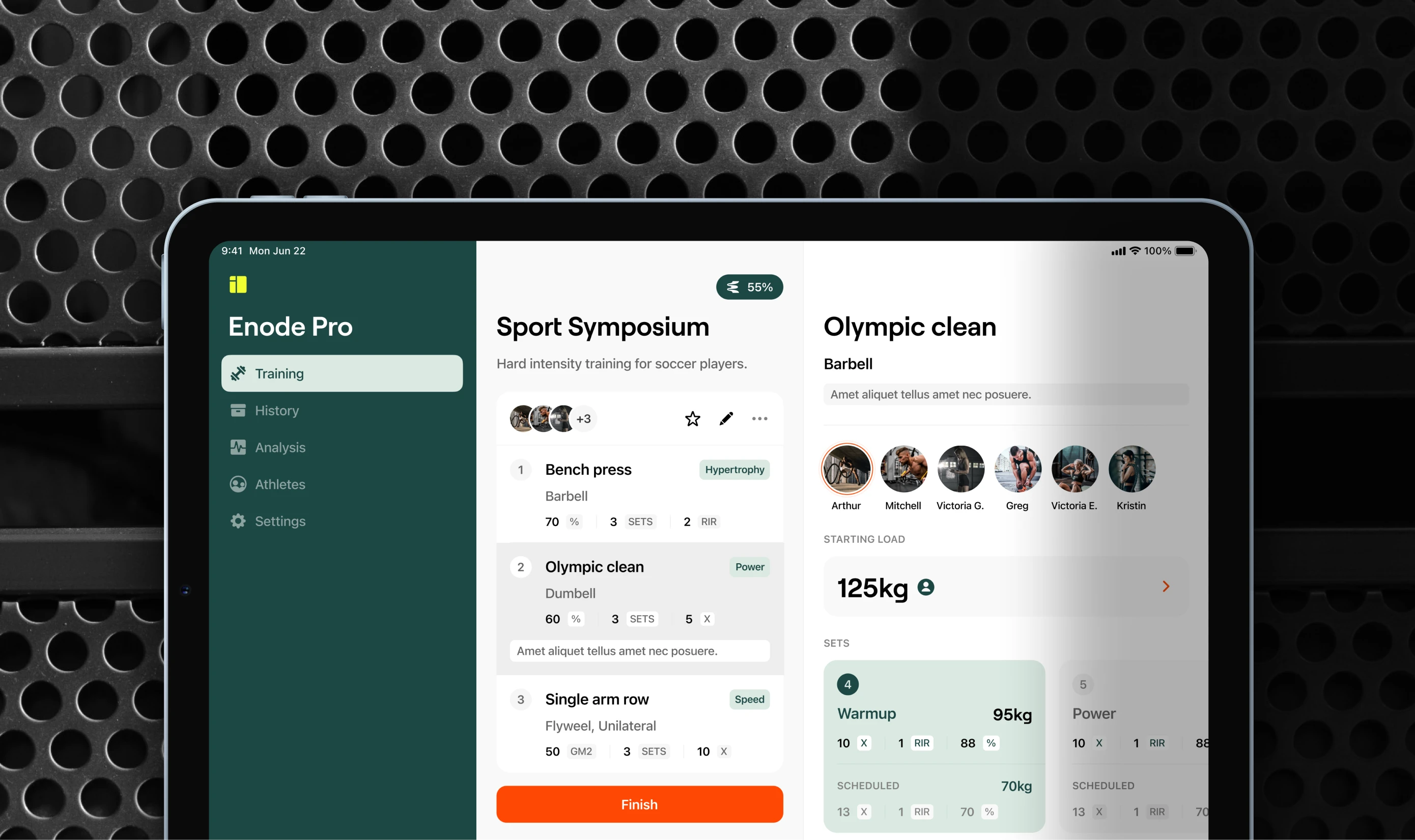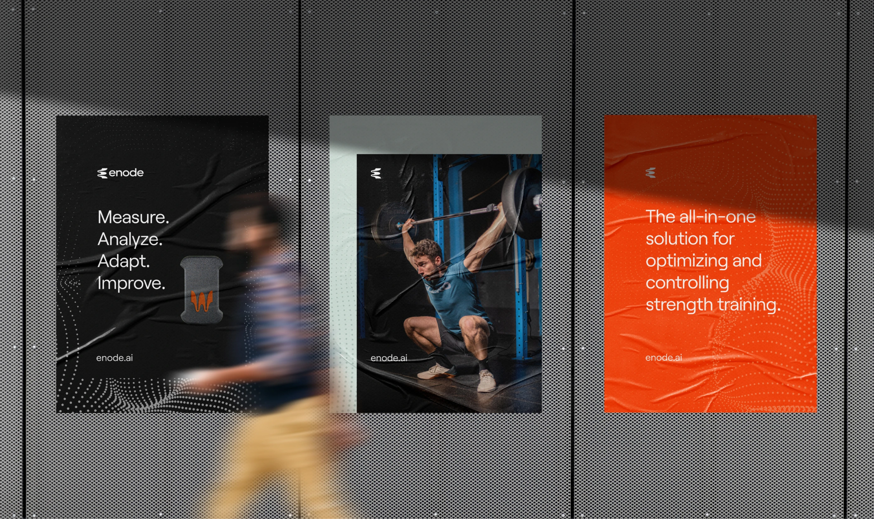 In a category full of powerful, maximal names, we leaned toward accuracy, measurement, and movement analysis. The name Enode, drawn from the Latin ‘enodo’, meaning to untangle and elucidate, was chosen to define the brand’s core purpose: revealing the complexities of the human body through data. Sub-products were named to reflect user context — Enode One for individual trainers, Enode Pro for coaches and elite athletes.