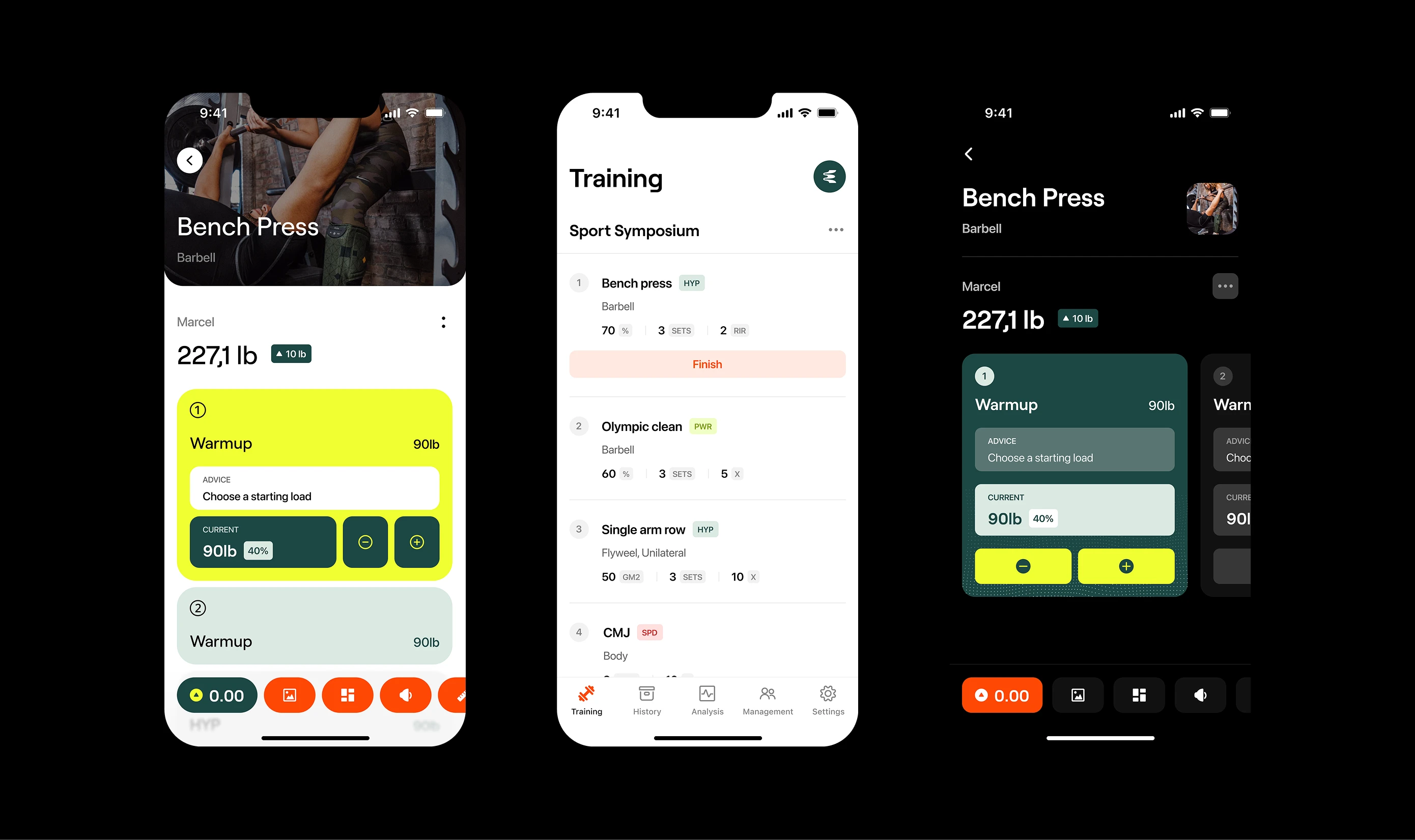 The app redesign required close collaboration between branding and UI to ensure the new identity translated clearly across every screen. Information architecture and data presentation were restructured for clarity and intuition, giving users better visibility over workout routines, exercise context, and body feedback without adding cognitive load.